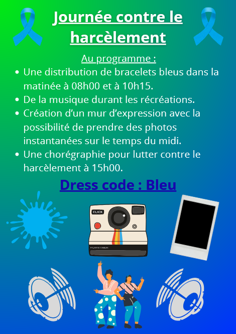 Les élèves et les adultes du collège s’engagent contre le harcèlement avec une mobilisation en couleur bleue cette année.